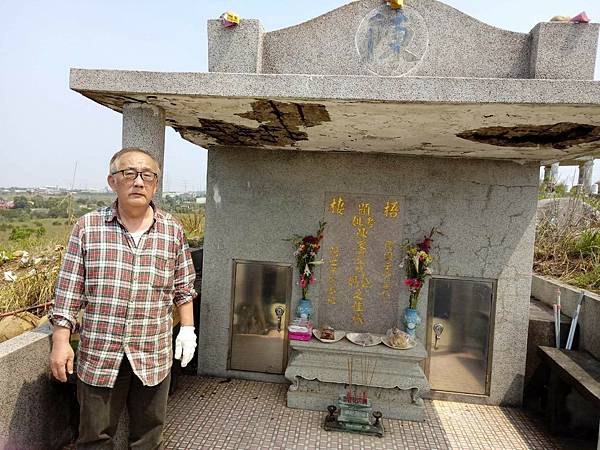 109年清明媳婦臨盆在即,不方便掃墓,已連著三年沒到沙鹿的老頭和阿芬再度上場。掃墓時發現墓前頂蓋有兩處水泥剝落,當時不以為意。