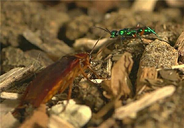直接把蟑螂毒暈的話,獵物個頭太大了,黃蜂沒力氣把它拖回家,把蟑螂變成傀儡就簡單多了。