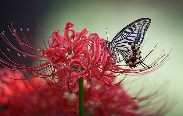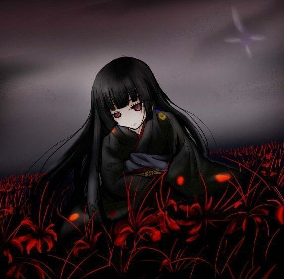 知名動漫《地獄少女》閻魔愛的代表花朵即彼岸花,彼岸花絢爛如血,鋪滿通往地獄的路,並且彼岸花有花無葉,是冥界唯一的花,更是黃泉路上唯一的風景與色彩。