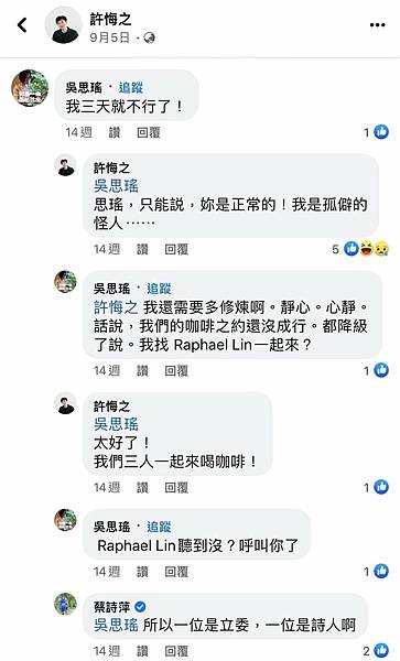 她表示,當天主要是與學運老朋友鍾佳濱、郭國文約好要聚會,事前也不知道林秉樞會到,林男是個博士生,有點像是學術界的後輩,但重要的是,應該一起譴責親密關係的暴力,以及性私密影像威脅的防治,無論這人跟你認不認識,所有人都要一起努力,預防再有下一個受害者。