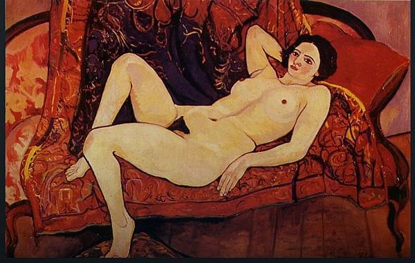 《裸身仰躺在豹皮上的凱薩琳》Catherine nue allongée sur une peau de panthère,油彩畫布,1923