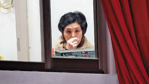 施宣榕獨坐在後台時,似乎想起些什麼,突然掉下淚來