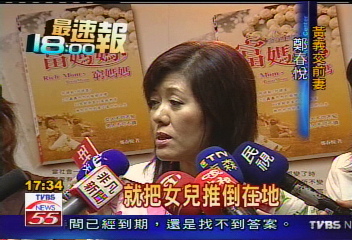 結束第二段的婚姻,立委黃義交前妻鄭春悅,從美國回來發表自己的新書,針對女兒和繼夫間的衝突,他毫不避諱侃侃而談。黃義交前妻鄭春悅:「因為女兒忘了帶鑰匙,所以把她叫進來,在拉扯當中力量非常大,就把女兒推倒在地。」記者:「你覺得這算家暴嗎?」鄭春悅:「我不同意這叫家暴。」