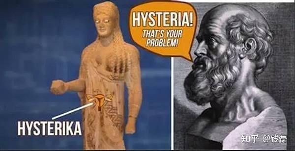 西醫之父,古希臘名醫希波克拉底首次提出hysteria(癔症/ 歇斯底里)這個概念。他認為,女人的子宮可以在體內自由移動,而性生活的匱乏會導致乾涸的子宮為了尋找水分四處遊走,從而引發歇斯底里的病徵。