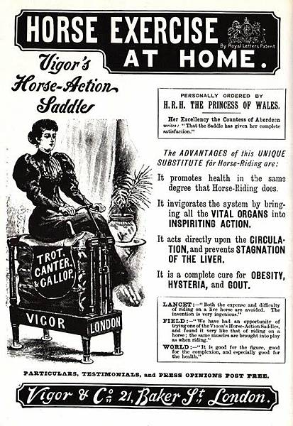 舊時代的醫生說性高潮是歇斯底里的特效藥,但又不好鼓勵女性自慰,畢竟自慰會讓惡魔跑進女生下面。那怎麼辦呢?嗯,很簡單,醫生會叫被診斷為歇斯底里的女生去找匹馬來騎。