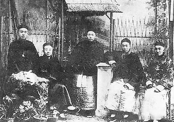 1918年弘一大師在入山梵行之前,與學生劉質平(左)豐子愷(右)合影,時為1918年4月15日