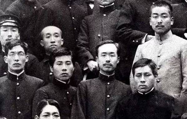 1911年3月,李叔同在東京美術學校畢業。圖為畢業時的合影,中為李叔同