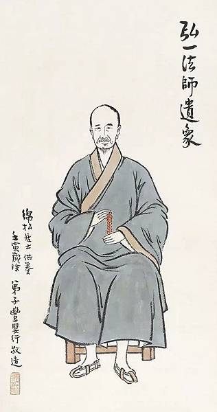 1918年(虛39歲),他在杭州虎跑寺剃度出家,吃素念佛,弘揚律宗,並著有《南山律在家備覽》。出家後,他於藝術活動方面,只保留了書法。日籍妻子在他出家後返回日本。
