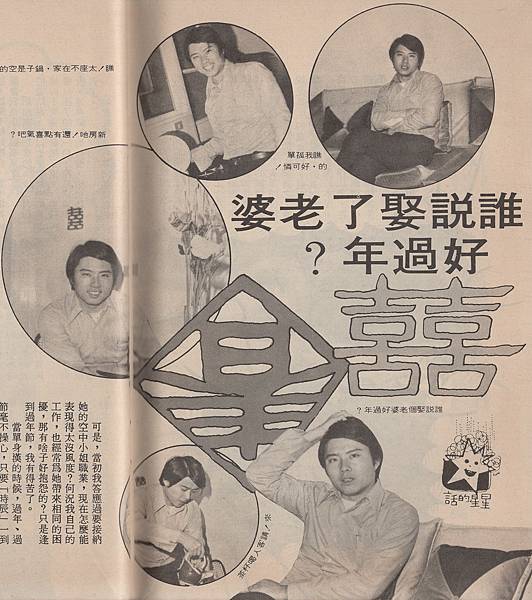 這是四十幾年前的一篇電視名星花絮,那時江先生三十出頭,新婚不久。電視週刊為我們留下江先生婚後第一個農曆年前的心情紀錄。當時江先生是製作人周遊發掘並力捧的演員,帥哥美女通常不會「寂寞」,我們姑且聽之。而後他與寇世勳、趙樹海並稱中視當家三小生。