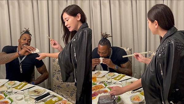 而名媛李晶晶也曬出和魔獸在同樣地點拍下的合照,她和霍華德頭靠著頭,看似非常害羞。期間李晶晶也特別幫霍華德包了一道「富貴雙方」,不忘用招牌晶晶體笑稱「富貴雙方,So nice他真的什麼都try! (也吃了兩個plate of 左宗棠雞)」李晶晶也特別標註魔獸,喊話對方「Happy night with super nice people . happy ure here! Dwight Howard」(開心的夜晚和超級好的人,開心你在這裡。
