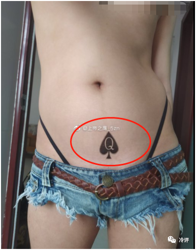 季梓越在各種國內平台和國際互聯網平台,炫耀自己的黑桃Q女皇專屬紋身。