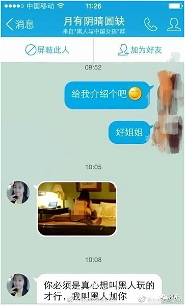 很顯然,她們這是要把中國的好女孩都拖下水、恨不得所有的中國女人都和自己一樣,去做黑人專屬的無恥賤人。