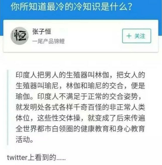 之前網絡上有一些謠言,說瑜伽起源於一些性交姿勢/性交體操,比如下文的「信誓旦旦」。