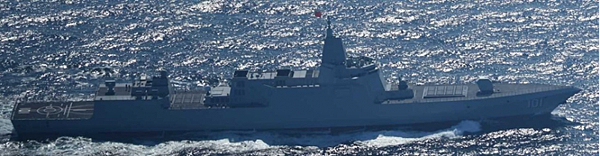 2021年3月25日行經日本對馬海峽的055型101號南昌艦,係遼寧號航母戰鬥群成員