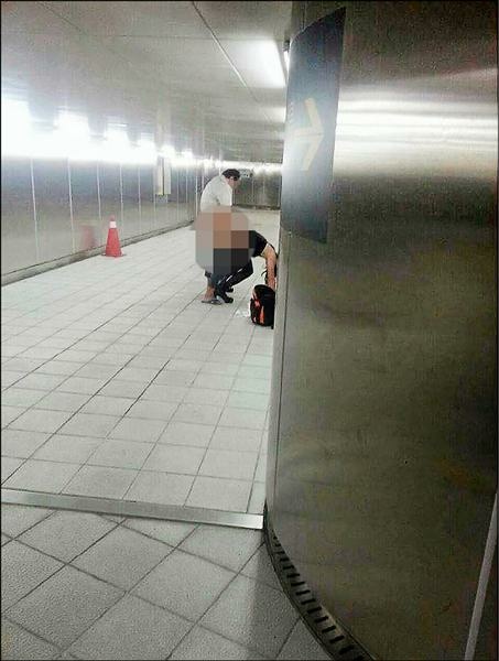 這實在太離譜了!網友在臉書《爆料公社》上傳兩張照片,定睛一看,就在熙來攘往的台北捷運地下道,竟然有一男一女公然「從後面來」。