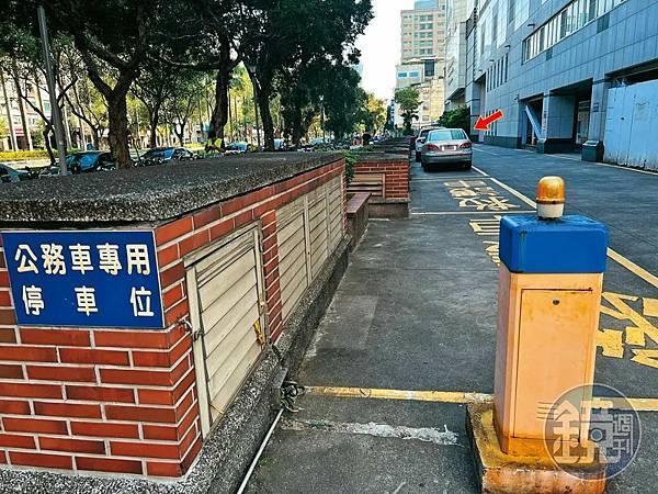 許朝程開車載母親到醫院看診,座車(箭頭處)就大剌剌停在公務車停車區