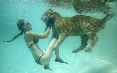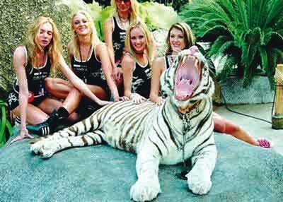 老虎平日不可能接觸到人類,與女人「交流」的機會更是微乎其微,然而在動物園或馬戲團裡,這一切變成可能。