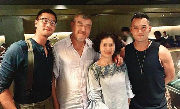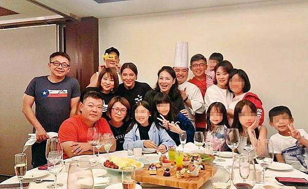 小禎(後排左四)跟丁春霆(後排左三)參加聚會,丁春霆雖然遮臉,但緊緊站在小禎身後