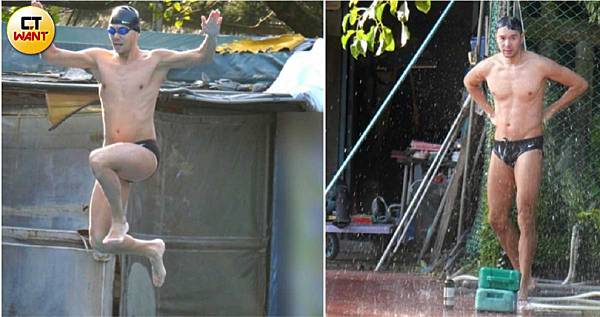 丁春誠泳技跟身材都很有看頭,游了二十多分鐘,他腰上的人魚線變得很明顯