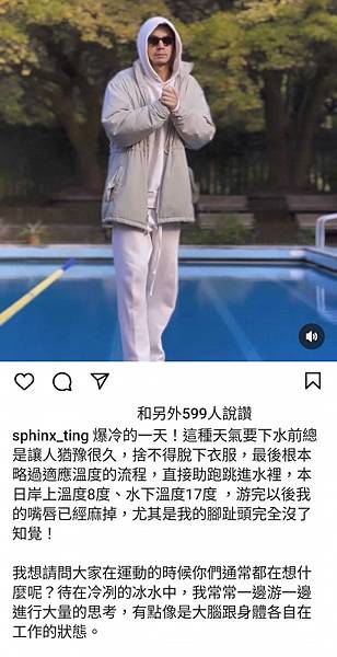 丁春誠事後發文透露當日行程,不過只分享游泳池上半場。