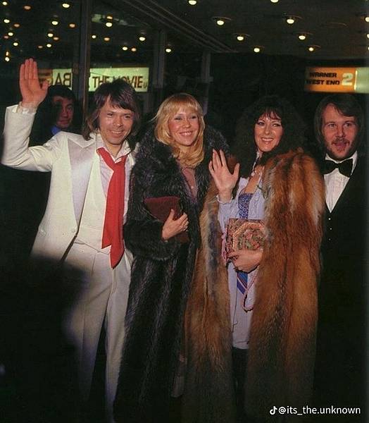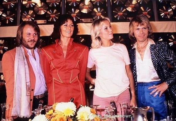 ABBA樂隊的四名成員,從左上按順時針順序:比約恩·奧瓦爾斯、班尼·安德森、安妮-弗瑞德·林斯塔德、昂內塔·費爾特斯科格,攝於2007年。比約恩與昂內塔曾是夫妻,當年四人合照一定站在一起,現在一定不站一起
