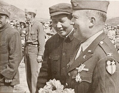 1944年毛澤東與美軍觀察組組長包瑞德(52歲)