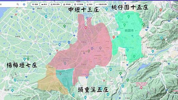 資料說明:圖中綠色斜線區塊是中壢十三庄範圍。